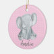 Gray Elephant mit White Polka Dots Design Keramik Ornament mit anpassbarer Hintergrundfarbe und Text.
