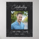Schwarzes Begräbnisposter oder Gedenkposter mit dem Foto Ihres Geliebten, der Name Ihres Geliebten in einem dünnen Drehbuch und Jahre leben in eleganten weißen Schriftart vor einem schwarzen Hintergrund mit schwacher, grauer Vegetation. Ein Gründenkmal-Service-Poster mit einem großen Foto. Das Leben des Posters personalisiert mit dem Foto, dem Namen und den Lebensjahren des geliebten Menschen feiern.