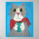 Gray Folk Art Cat mit Kaffeemaschine Poster