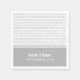 Lass deinen Persönlichkeiten mit diesen eleganten Goek Chic Binary Code Wedding Paper Napkins durch. Mit einem leicht gefärbten, nummerierten Hintergrund aus binärem Code und einem schlichten gepunkteten Rahmen ist dieses Design eine unterschwellige Art, Ihre Geekiness mit einem ausgeklügelten Flair zu zeigen. Einfach anzupassen, fügen Sie einfach die Details Ihrer Hochzeit in den Feldern zur Verfügung gestellt. Klicken Sie auf die Schaltfläche "Anpassen", um Schriftart oder Textfarben zu ändern.