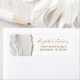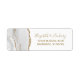 Die links Kulisse dieses eleganten, modernen Hochzeitseinladungs-Rücksendelabel besticht durch eine grau-weiße Aquarellgrenze mit vergoldetem Imitat-Glitzer. Der anpassbare Text kombiniert goldfarbene Handschriften und Copperplate-Schriftart auf weißem Hintergrund.