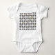 Dieser Baby Bodysuit hat ein modernes Design aus massiven, grauen Diamanten in grauen Diamantkörben mit Babyobjekten auf einem weißen Feld.