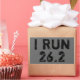 Ich führe 26.2 Aufkleber mit schwarzem Text, einem grauen Hintergrund, großartig für alle, die einen Marathon laufen!