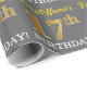 Gray, Imitation Gold Look "17. BIRTHDAY" Geschenkpapier