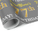 Gray, Imitation Gold Look "77. BIRTHDAY" Geschenkpapier