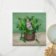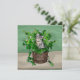Eine hübsche, graue Katze, die in einem Topf des Catnips sitzt.