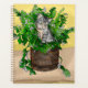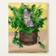 Eine hübsche, graue Katze, die in einem Topf des Catnips sitzt.
