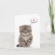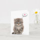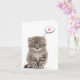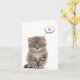 Niedliches, graues, flauschiges Kätzchen auf Weiß mit einer Denkblase und rosa Herz. Die Farbe des weißen Hintergrunds kann geändert werden.