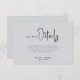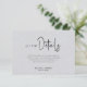 Whimsical minimalistische moderne, anpassbare schwarze Skript Typografie, elegante Hochzeitsdetails Mailing-Zubehör. Die hellgraue, bedruckte Leinentextur verleiht dem Ganzen eine Touch Bio Eleganz. Andere Farben sind verfügbar.