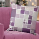 Ein modernes Design-Kissen mit karierten Mosaikmustern mit subtilen Aquarelleffekten in Lila, lila und lila Grautönen.