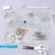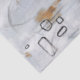 This minimalist abstract design combines cool, bright hues with bold graphic contrasts, creating a modern and sophisticated aesthetic. Textured strokes, charcoal marks, and small, irregular shapes in black develop against an icy and pearl gray background, creating a visual rhythm and a sense of controlled movement. Warm touches of ochre introduce chromatic balance and an elegant accent that captures the eye. A minimalist composition rich in texture.