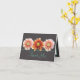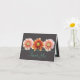Drei schöne Korallenrosa und orange Dahlien Blume Set vor einem grauen Hintergrund. Der Pfefferfarbtext verwendet einen attraktiven Schriftzeichen-Schriftart. Die Blume decken die Vorderseite dieser Karte ab, die als Dankeschön-Karte für Hochzeiten, Geburtstagskarte oder jede andere Karte Ihrer Wahl verwendet werden kann. Personalisieren Sie es mit Ihrem Text und/oder Bildern, um es zu einem einzigartigen zu machen!