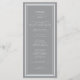 Das elegante, minimalistische Hochzeitsprogramm zeichnet sich durch ein einfaches, modernes Design aus, das auf einem ULTIMATE GRAY-Hintergrund einen doppelten gerahmten Rahmen in knalligem Weiß aufweist. Traditionelle, klassische Formulierungen sorgen für zeitlose Eleganz. Personalisieren Sie Ihre Hochzeitszeremonie Details für Ihre Gäste in trendiger, weißer Kalligraphie Schrift und Schrift. Die Rückseite der Karte passt zu knusprig weiß auf grau und dreht sich um Ihre Hochzeitsfeier. Bitte kontaktieren Sie mich unter invitationsuites@gmail.com wenn Sie Fragen zu diesem oder einem unserer Produkte haben.