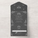 Einladende Gäste zu Ihrer bevorstehenden Hochzeit mit einem grauen Monogramm und Pfeilen All in One Wedding Einladung. Einladende Gestaltungsmerkmale gekreuzte Pfeile und Monogramm-Platzierung mit eleganten Ecken-Schnörkeln. Personalisieren Sie mit dem Bräutigam und den Namen der Braut zusammen mit dem Hochzeitstag und der Lage. Mit diesem Design sind auch weitere Hochzeitswaren erhältlich.