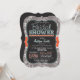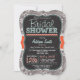Bridal Duscheinladung mit niedlichem Chalkboard Schriftart auf orange aquamarine Farben und warmes graues Paisley Muster. Vintage Fechtkreide-Schriftart auf coolem Hintergrund mit einem rassigen Gestaltungselement.