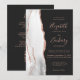 Die links Seite dieses eleganten, modernen Hochzeitseinladens besticht durch eine grau-weiße Aquarellgrenze, die mit Imitaten Rose Gold Glitzer bestickt wurde. Der anpassbare Text kombiniert Rose-farbene Handschrift, Copperplate und kursivem Schriftart auf einem schwarzen Hintergrund. Die Rückseite bietet Platz für Hochzeitsdetails auf einem soliden Schiefer-Hintergrund, zusammen mit einem QR-Code können Gäste scannen, um Ihre Website und UAWG, die die Kosten für den Druck und Versand separater RSVP-Karten rette.