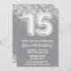 Graue und silberne 15. Geburtstagsfeier Einladung 15 Geburtstagsfeier für Junge oder Mädchen mit modernem Drehbuch und lustigen Ballons.