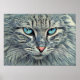 Ein nahes Up einer grauen Tabby-Katze mit blauen Augen.