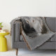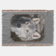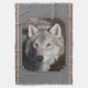 Das Gesicht eines grauen Holzwolfs mit leuchtend orangen Augen. Realistisches Kunstwerk aus einem originalen Ölgemälde des Pferd- und Wildtierkünstlers Crista S. Forest.