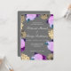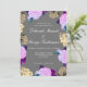 Gray Violet Floral Wedding Invitation. Beautifully elegant wedding invitation in charcoal gray with violet and cream flowers bordering. Using the template, fill in your details and customize it. Rsvp details are on the back.