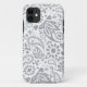 Schöne Telefonabdeckung mit grauem und weißem Boho Paisley Muster. Schick, stilvoll und feminin. Sie können die Hintergrundfarbe anpassen, indem Sie die Farbe von weiß auf die Anzüge Ihres Geschmacks ändern. Klicken Sie einfach auf BEHERRSCHEN.