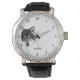 Graues Wolf Canis lupus Tierportrait in Schwarz-Weiß. Eine elegante Armbanduhr für jeden. Personalisierbar. Sie können den Text unter dem Bild ändern oder löschen. Sie können dieses Design auf ein anderes Produkt Ihrer Wahl übertragen, verwenden Sie einfach eine Option auf der rechten Seite dieser Beschreibung.wristwatch