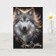 This gray wolf birthday card, designed by Susang6 with AI, features a majestic wolf with copper accents in its fur and eyes. A customizable message awaits inside.