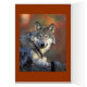 Der schöne Ausdruck eines grauen Wolfs sieht auf einer großen Vielfalt von Waren für Wildtiere phantastisch aus.
