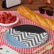 Gray Zigzag, grau Zickzack, Zigzag Muster, blau Pappteller