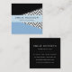 Elegante, stilvolle und raffinierte Visitenkarten mit Zickzackmuster (Zickzack) in Grautönen und Weiß mit blauen und schwarzen Farbflecken. Modernes Design, perfekt für Zickzackliebhaber.