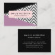 Elegante, stilvolle und raffinierte Visitenkarten mit Zickzackmuster (Zickzack) in Grau und Weiß mit lila und schwarzen Farbflecken. Modernes Design, perfekt für Zickzackliebhaber.