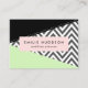 Elegante, stilvolle und raffinierte Visitenkarten mit Zickzackmuster (Zickzack) in Grautönen und Weiß mit Minze und Schwarz Farbtupfern. Modernes Design, perfekt für Zickzackliebhaber.