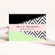Elegante, stilvolle und raffinierte Visitenkarten mit Zickzackmuster (Zickzack) in Grautönen und Weiß mit Minze und Schwarz Farbtupfern. Modernes Design, perfekt für Zickzackliebhaber.