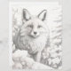 Graustufen-Farbseite mit einem Fuchs, der in einem Winterwald stehend ist. Wählen Sie das Papier für Ihr Lieblingsmedium. Ich schlage das gerecycelt Papier für Buntstifte, Pastells und Kohle vor.