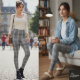 Grayscale Repeating Medium-Scale Plaid Texture Leggings
