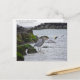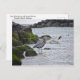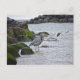 "Great Blue Heron and Brown Pelican" Postcard von Catherine Sherman. Ein großer blauer Held steht in der Nähe von Mosaikfelsen in der Nähe von Pelican Point auf Dauphin Island, Alabama. Im Hintergrund schluckt ein braunes Pelikan einen Fisch. Hinter dem Pelikan befindet sich ein zweischneidiges Kormoran. Dauphin Island ist eine Barriereinsel an der Mündung der Mobile Bay im Golf von Mexiko.