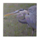 Der Große Blaue Heron auf dem Originalfoto auf diesem kleinen Keramik Tile zeigt seinen Absturz, sieht ein bisschen wie ein Stachelschwein aus, flattert seine Federn, um sich größer zu machen, um einem anderen Vogel zu sagen, dass es sein Territorium ist. Im Foto sehen wir den Vogel im Profil, seine graublaue Färbung endet in einem weißen Kopf mit tiefblauen Bändern auf beiden Seiten. Sein langer gelber Schnabel zeigt gerade nach vorn, während er mit seinem langen, gekrümmten Hals an seinem Körper festsitzt. Der Hintergrund von Gräsern ist in gedämpften Erdtönen mit durchweg grünen Teilen.