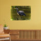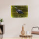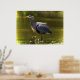 Dieses Poster zeigt den Großen Blauen Heron, einen großen Wattenvogel in der Heronfamilie Ardeidae, der in der Nähe des offenen Wassers und in Feuchtgebieten verbreitet ist. Er ist der größte nordamerikanische Held. Zu den bemerkenswerten Merkmalen zählen Latschfedern, rot-braune Oberschenkel und ein paarweise rot-brauner und schwarzer Streifen auf den Flanken; der Hals ist rostig grau, schwarz-weiß streut die Vorderseite ab; der Kopf ist blasser, mit fast weißem Gesicht, und ein Paar schwarzer Schwaden, die von knapp über dem Auge bis zum Hinterkopf laufen. Die Federn am unteren Hals sind lang und plume-ähnlich. Da dies die Brutzeit ist, hat er auch Trachten auf dem unteren Rücken und eine orangefarbene Rechnung. Er ist in flachem Wasser stehend, und seine Federn werden durch das helle Sonnenlicht wieder beleuchtet.