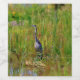 Großer Blauer Heron im Sumpfgras. Ein exklusives Design von Watershed Wildlife. Ein großartiger Gegenstand für die Outdoor-Person jeden Alters. Ein stehender Held in einer Lichtung im Feuchtgebiet, umgeben von Natur.