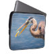 Protect your laptop with striking wildlife photography featuring a great blue heron in a dramatic hunting moment. The elegant bird lifts its head from the water with freshly caught prey, highlighting the precision and beauty of this iconic wetland hunter. The vivid colors and natural detail bring a bold nature-inspired look to your everyday tech, making this laptop pouch perfect for bird lovers, wildlife enthusiasts, and fans of nature photography.