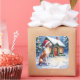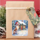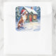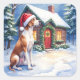 Great Dane Snowy Cabin Santa Hat Christmas Art Quadratischer Aufkleber