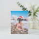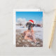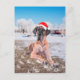 Niedlicher Großer Dane Hund sitzend in Schnee Weihnachten Rote Weihnachtsmannmütze