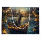 Set segelt mit dieser sehr detaillierten Abbildung in den Zauber der Urlaubssaison und zeigt einen stolzen Hund, der in einem festlich dekorierten Boot sitzt und über einen ruhigen Weihnachtssee gleitet. Die Lichter der nahen Kiefernbäume reflektieren das Wasser und warmen, festlichen Glanz, der das gemütliche Ambiente verstärkt. Die Ornamente versetzen sich von den Seiten des Bootes, während die Laternen leuchten und eine Szene schaffen, die das wahre Wesen der Weihnachtswärme und -freude einfängt. Dieses nostalgische Kunstwerk bringt eine Touch von Urlaubsmagie in jeden Raum, perfekt für diejenigen, die den Geist der Saison schätzen.