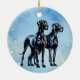 Eine stilisierte Abbildung zweier majestätischer Große Dänen stehend nebeneinander, die ihre schlanken, muskulösen Körper und ihre eleganten Eigenschaften zeigen. Die Hunde sind schwarz mit glänzenden, glänzenden Mäntel, die durch dramatische Schatten und Highlights verstärkt werden, um ihre ausgeprägten Physiken mit einem subtilen Aquarelleffekt zu unterstreichen, der eine künstlerische Touch verleiht.