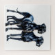 Eine stilisierte Abbildung zweier majestätischer Große Dänen stehend nebeneinander, die ihre schlanken, muskulösen Körper und ihre eleganten Eigenschaften zeigen. Die Hunde sind schwarz mit glänzenden, glänzenden Mäntel, die durch dramatische Schatten und Highlights verstärkt werden, um ihre ausgeprägten Physiken mit einem subtilen Aquarelleffekt zu unterstreichen, der eine künstlerische Touch verleiht.