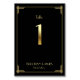 Great Gatsby Art Deco Hochzeitskarten mit goldener Nummer 1 und anpassbarer Tischnummer, wo Sie Ihre Namen und das Hochzeitsdatum hinzufügen können, auf schwarzem Hintergrund gedruckt