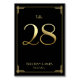 Große Gatsby Art Déco Hochzeitskarten mit goldener Nummer 28 und variierbarer Tischnummer, wo Sie Ihre Namen und Ihr Hochzeitsdatum hinzufügen können, auf schwarzem Hintergrund gedruckt