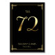 Great Gatsby Art Deco Hochzeitskarten mit goldener Nummer 72 und variierbarer Tischnummer, wo Sie Ihre Namen und das Hochzeitsdatum hinzufügen können, auf schwarzem Hintergrund gedruckt