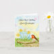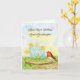 This spring-themed birthday card features a daffodil-inspired birthday cake, the flower of March, with a robin perched on a wooden cake stand, creating a cheerful and meaningful design for a great granddaughter’s birthday.