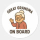Let everyone know who’s riding in style with our “Great Grandma On Board” sticker! This cute and cheerful design features a friendly cartoon grandma, spreading warmth, love, and a touch of humor wherever you go. Perfect for car windows, bumpers, laptops, or even notebooks, this sticker adds personality and charm while showing off Grandma pride.